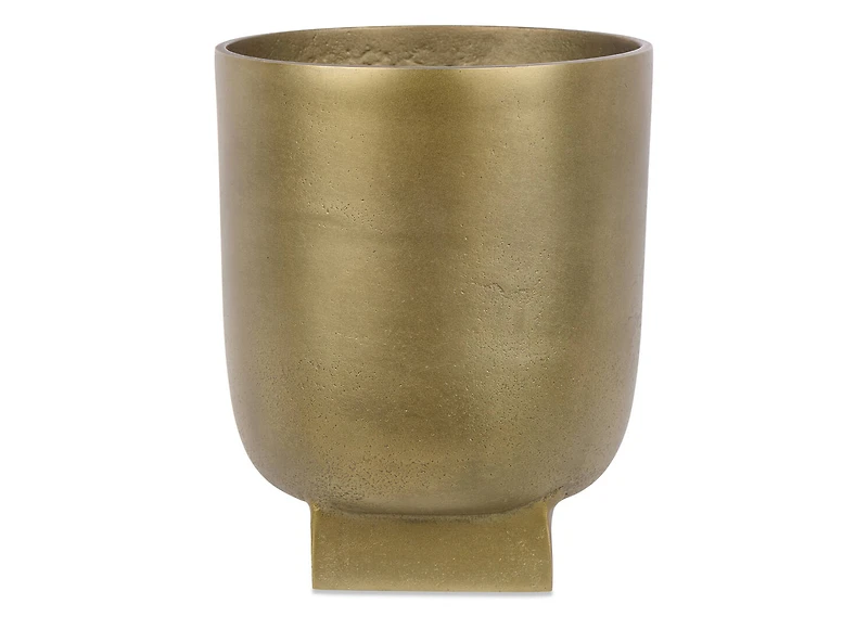 Our Maila Planter is cast from recycled aluminum into a one-piece vessel that can anchor a room thanks to its substantial size and weight. The design is given an antiqued brass finish for a warm, golden tone that complements any décor seamlessly.