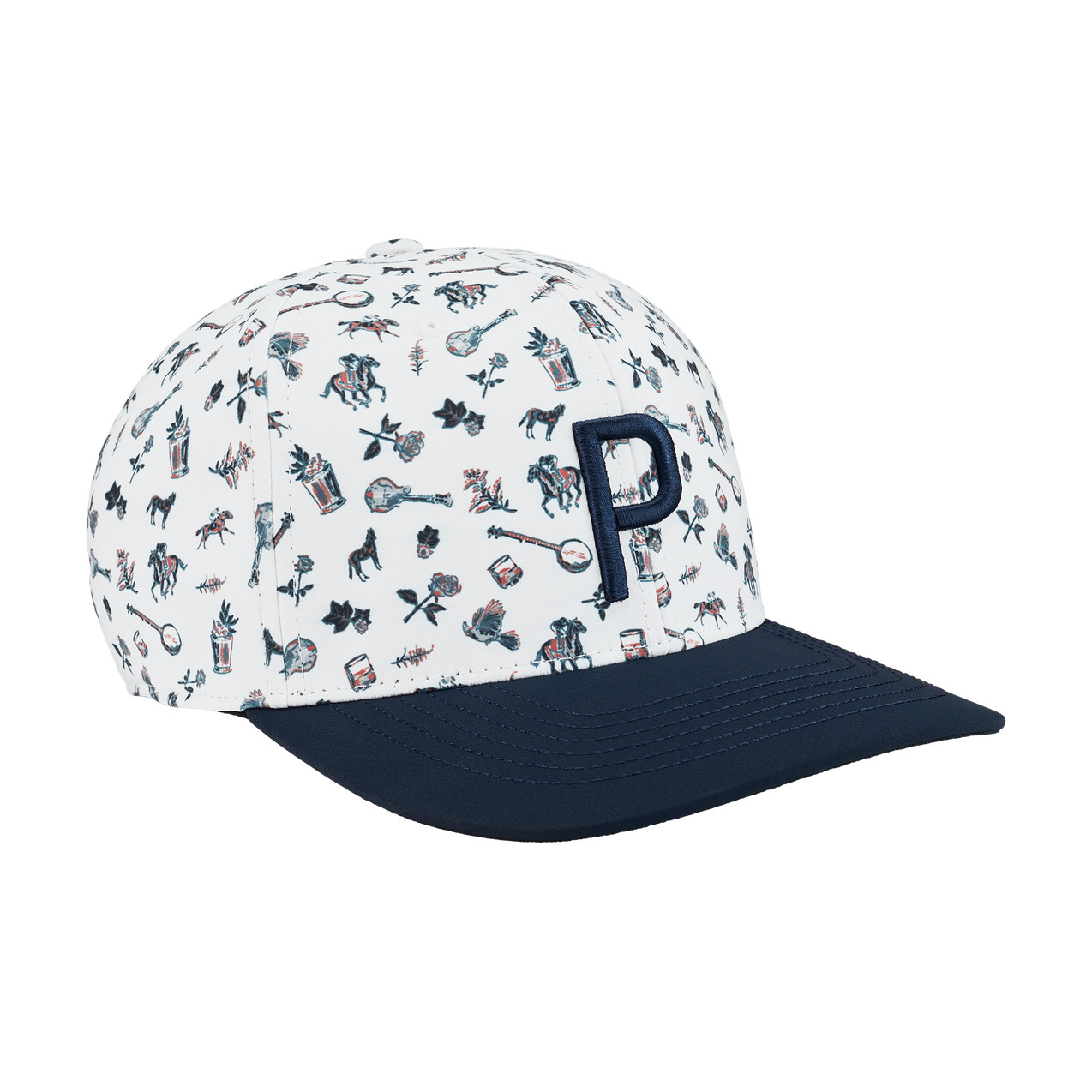 The 4fore3 5 panel snapback hat is crafted from premium stretch performance twill fabric and features an appliqué 4fore4 emblem, athletic sweatband and adjustable snap closure.
