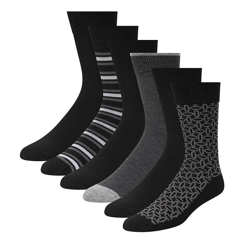 - Soft stretch knit fabricPull-on styleCrew sock silhouetteAssorted solid, stripe, and patterned designsLightweight non-terry constructionRibbed cuff for a secure fitIncludes six pairs