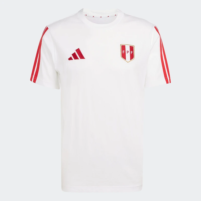 Experience the soft-touch comfort of the Peru National Team FIFA x World Cup Alphaskin T-Shirt from adidas. This regular-fit tee features sewn-on sleeve stripes and heat-sealed team graphics, allowing you to showcase your Peru National Team pride in style. Made from 100% cotton, this T-shirt is the perfect way to support your favorite team in premium comfort.
