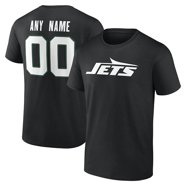 Men's Black New York Jets Team Authentic Personalized Name & Number T-Shirt