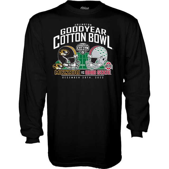Men's Blue 84 Black Missouri Tigers vs. Ohio State Buckeyes 2023 Cotton Bowl Matchup Long Sleeve T-Shirt