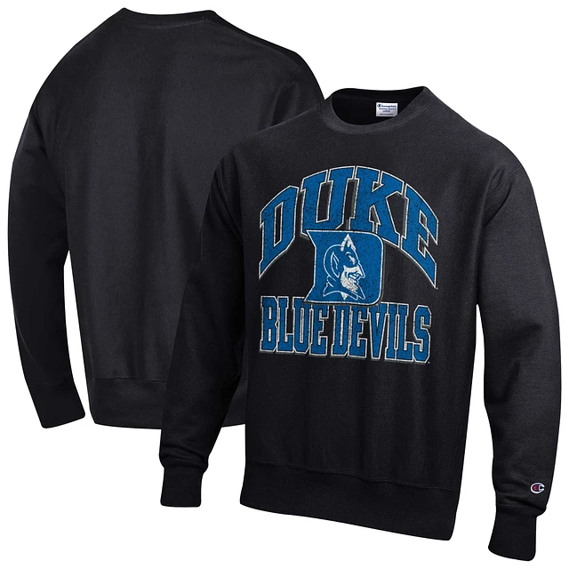 Men's Champion Black Duke Blue Devils Vault Late Night Reverse Weave Pullover Sweatshirt