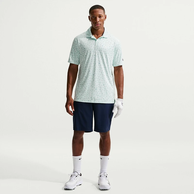 Made with a stretchy, brushed knit fabric that feels extra soft to the touch, this sweat-wicking polo helps you stay dry through 18 holes. An allover print of some of our best-selling sneakers and golf shoes ties your love of sneakers to your golf game. Nike Dri-FIT technology moves sweat away from your skin for quicker evaporation, helping you stay dry and comfortable. Split hem and drop tail design provide the coverage and mobility you need to look and feel your best while you play. Top-stitch design on the collar and piping detail on the shoulder seam provide a crisp, sophisticated look rooted in Nike Golf history.