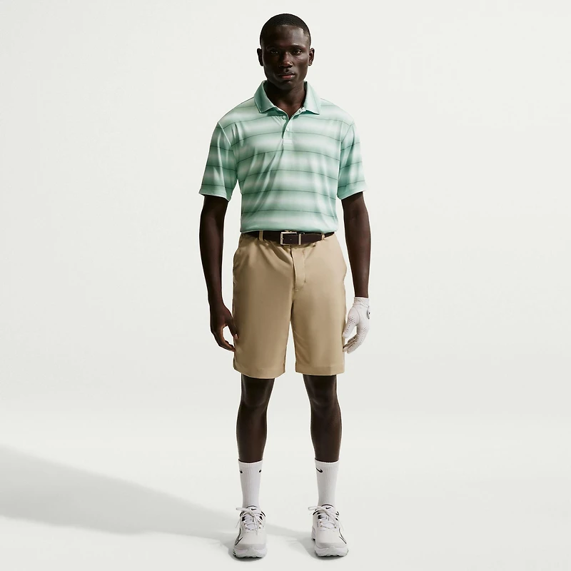 Made with a stretchy, brushed knit fabric that feels extra soft to the touch, this sweat-wicking polo helps you stay dry through 18 holes. Nike Dri-FIT technology moves sweat away from your skin for quicker evaporation, helping you stay dry and comfortable. Split hem and drop tail design provide the coverage and mobility you need to look and feel your best while you play.