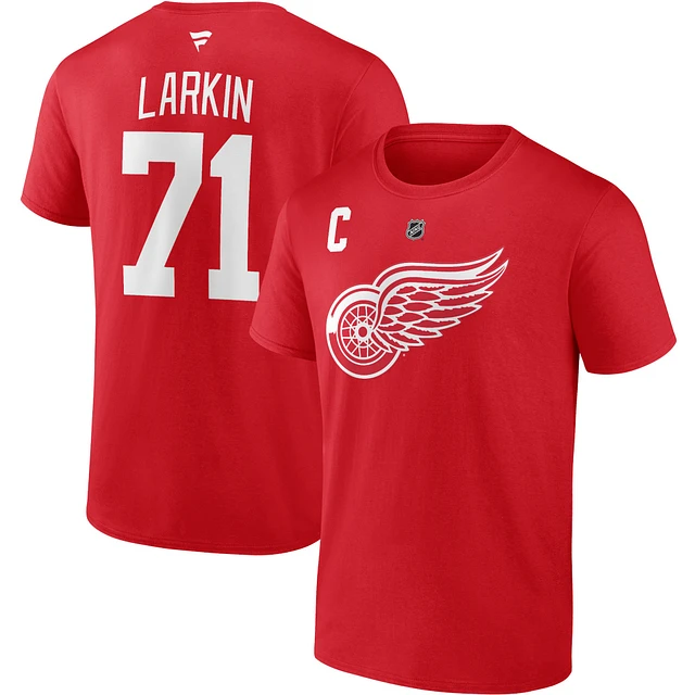 Men's Dylan Larkin Red Detroit Wings Authentic Stack Captain Name & Number T-Shirt