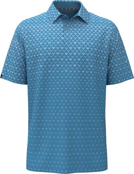 Level up your golf wardrobe with the sophisticated Engineered Chevron Ombre Print Golf Polo from Callaway Apparel. This golf polo shirt features enhanced stretch and a contemporary ombre chevron design on the front that adds a touch of visual punch to your game. The inclusion of Swing Tech allows for greater flexibility and enhanced movement, making each swing a joy. Moisture wicking capability will keep you dry, and UPF 50 sun protection helps protect against harsh UV rays.