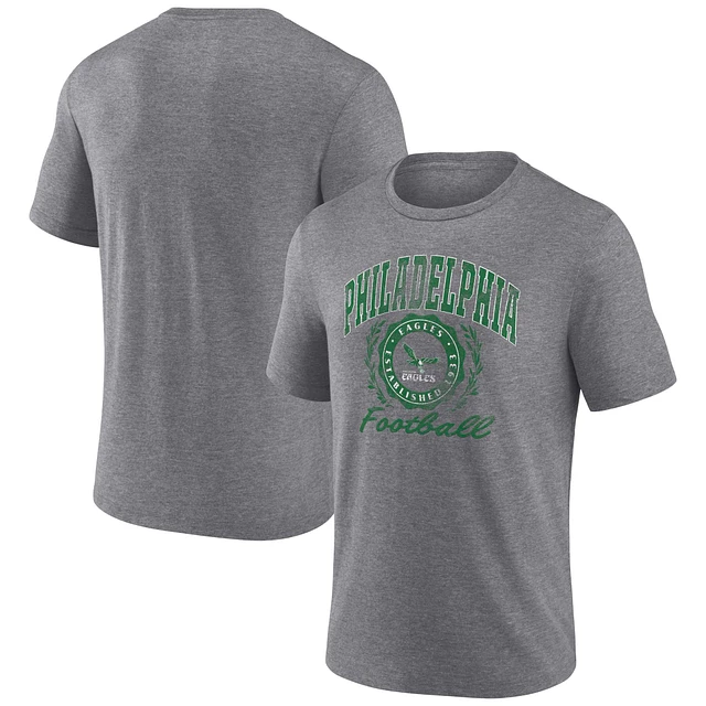 Men's Fanatics Heather Gray Philadelphia Eagles Distressed Football Seal Tri-Blend T-Shirt