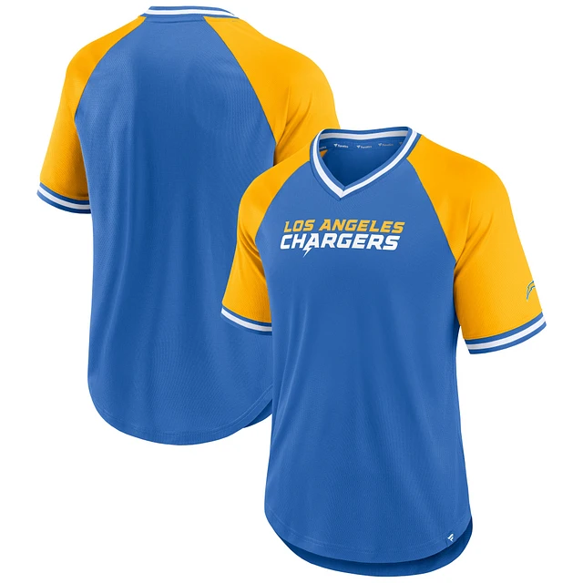 Men's Fanatics Powder Blue Los Angeles Chargers Second Wind Raglan V-Neck T-Shirt