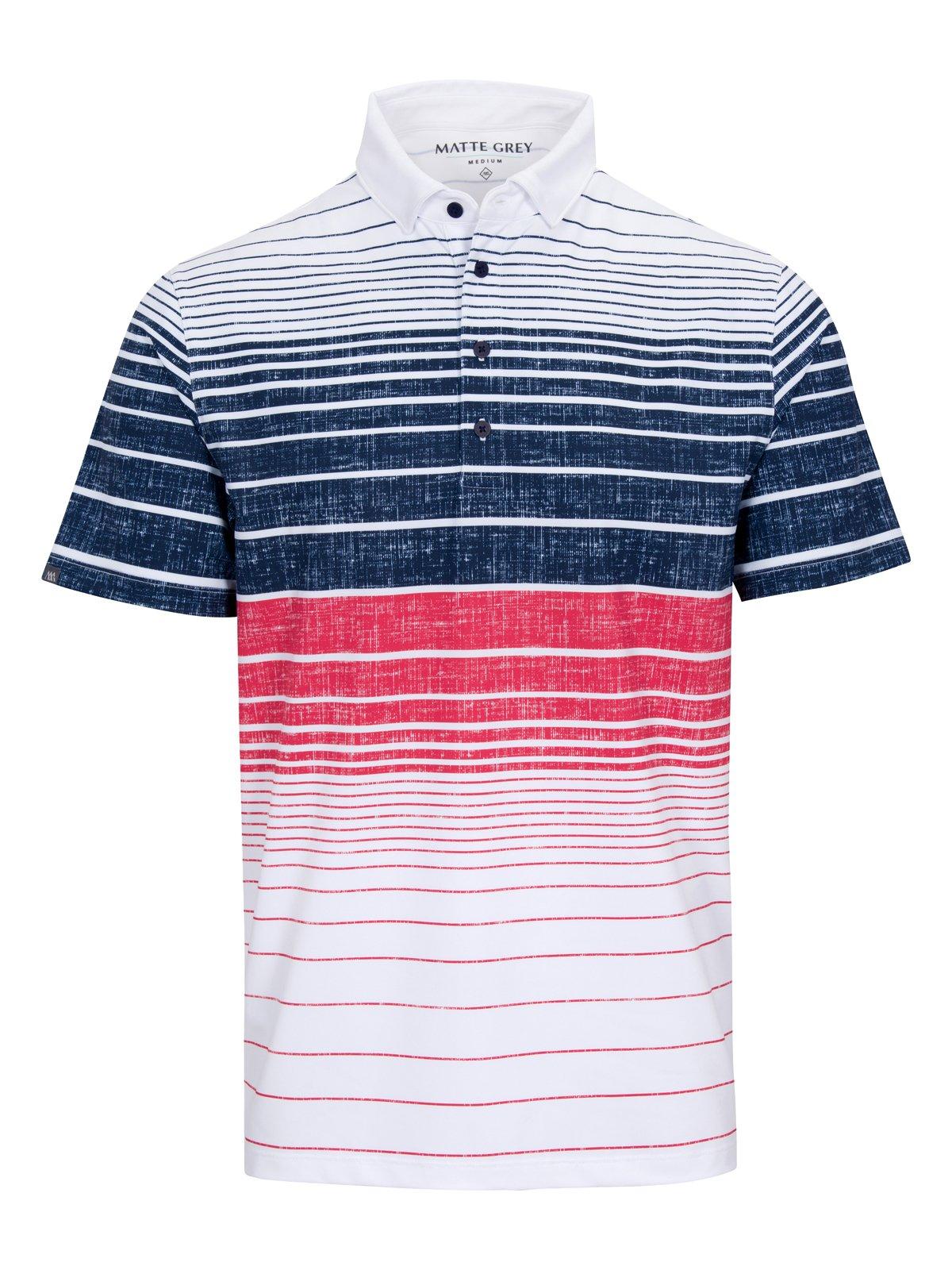 Lightweight, moisture-wicking performance fabric with extra stretch for maximum comfort and breathability. Contemporary all over print. Mini MG label sewn on right sleeve. Hidden collar-stay buttons. Contemporary reduced-angle collar with 4-button slender placket.