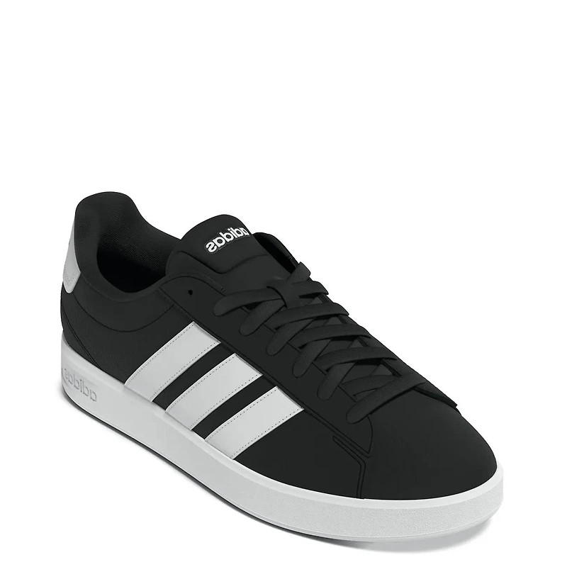 These men's Adidas Grand Court 3.0 athletic sneakers blend heritage and comfort for everyday wear. These wide-width sneakers have an upper that combines durable leather and textile materials for a sleek, street-ready look. The lace closure ensures a secure, adjustable fit. A classic low-cut design adds versatility. CLOUDFOAM technology delivers soft, responsive cushioning with every step, supported by a plush footbed and smooth sock construction. A lightweight midsole enhances comfort and the high-abrasion rubber outsole provides reliable traction across urban surfaces. Made in part with recycled materials, these shoes offer sustainable wear.