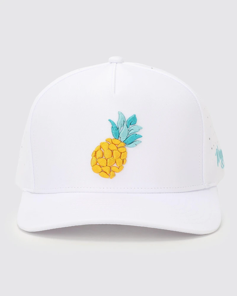 - Feet in the sand, cold drink in hand. Sip back and relax in our island-inspired pineapple hat.