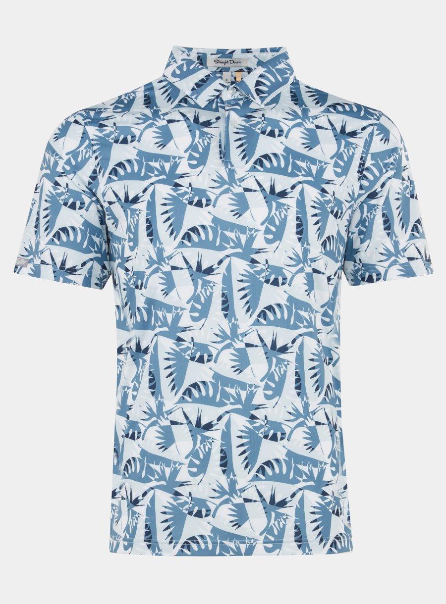The Kapalua Polo is covered in an abstract tropical leaf print and is made from Micro-Pique fabric. Features SPF 50+. Odor-control anti-microbial finish. Self collar design. Three-button placket.
