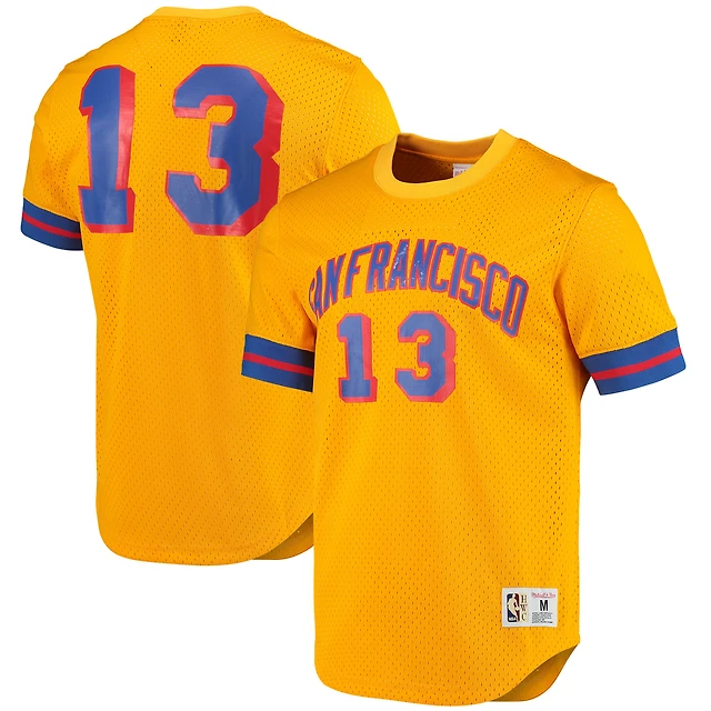 Men's Mitchell & Ness Wilt Chamberlain Gold San Francisco Warriors 1962 Mesh Name Number T-Shirt
