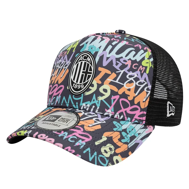 Men's New Era Black AC Milan Graffiti Allover Print Trucker Adjustable Hat