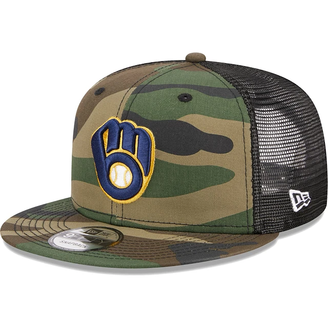 Men's New Era Camo Milwaukee Brewers Woodland Camo Trucker 9FIFTY Snapback Hat