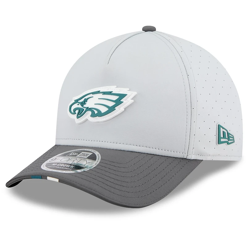 Men's New Era Gray/Graphite Philadelphia Eagles 2025 NFL Training Camp A-Frame 9FORTY Adjustable Hat in Coquitlam, BC