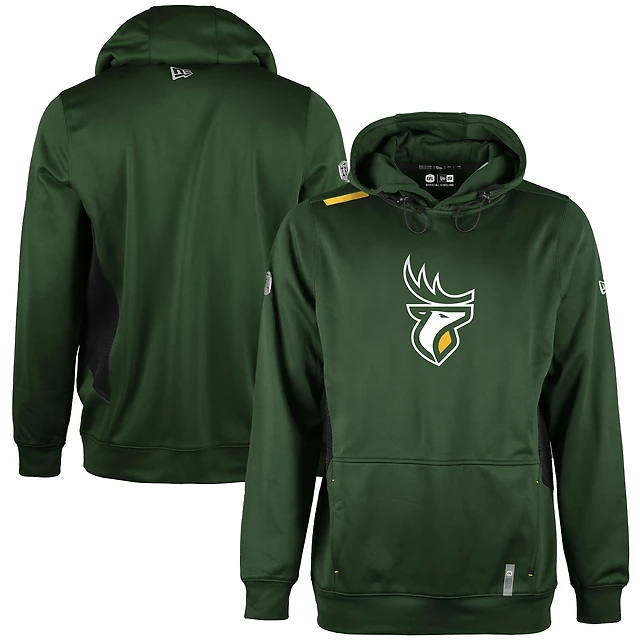 Men's New Era Hunter Green Edmonton Elks Sideline Shuffle Pullover Hoodie