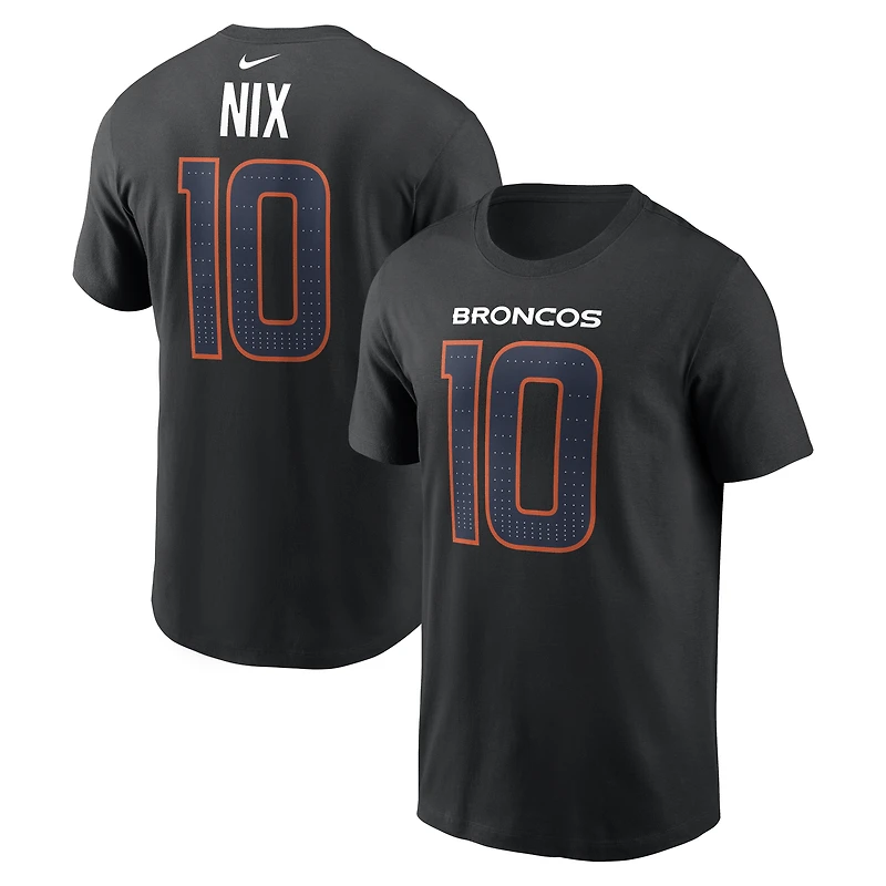Show your support for your favorite Denver Broncos player with this Bo Nix Carbon Name & Number T-Shirt by Nike. Made from lightweight, breathable cotton jersey, it provides a comfortable feel for everyday wear. The screen-printed player name on the back and #10 on both sides are inspired by the team's official jersey, making this Denver Broncos tee an essential way to display your pride.