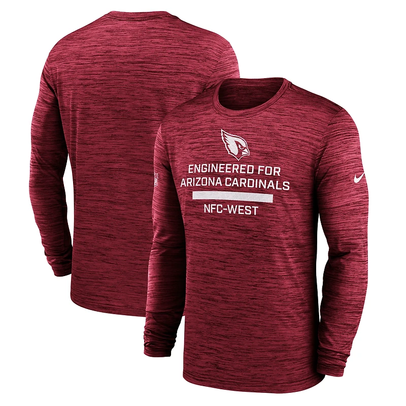 Wear the same gear as the Arizona Cardinals with this 2025 Sideline Velocity Performance Long Sleeve T-Shirt by Nike. It features sweat-wicking Dri-FIT® technology to keep you dry and cool, whether you're at the game or playing yourself. The cross-dyed pattern adds visual interest to this lightweight Arizona Cardinals tee.