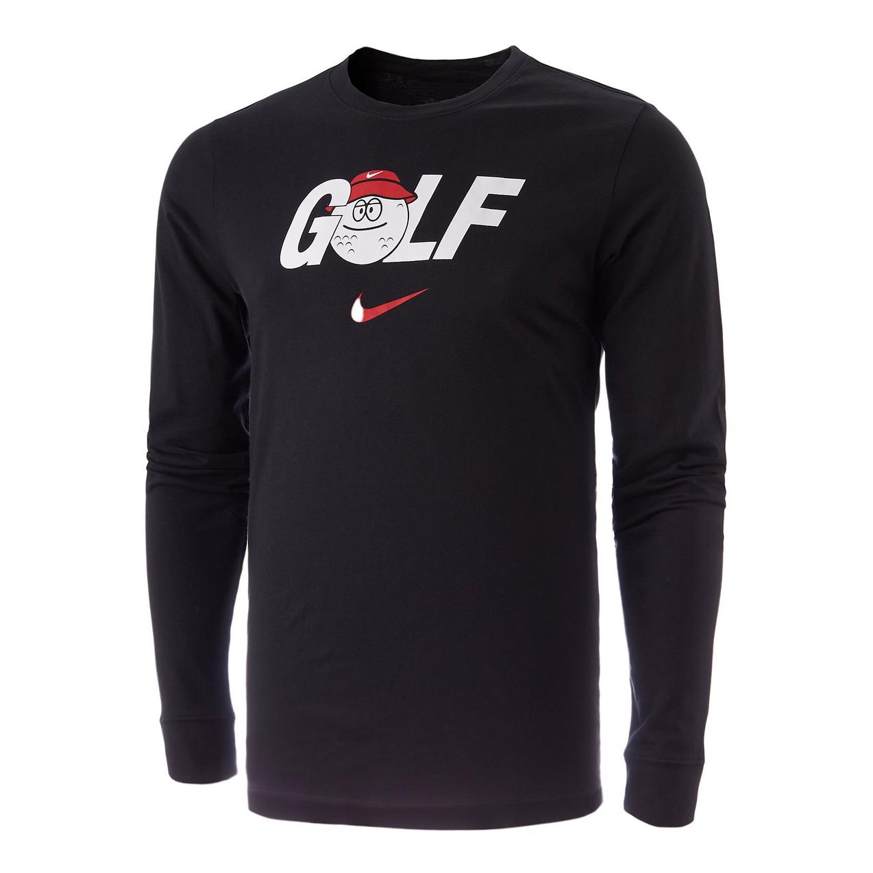 Nike Men's Long-Sleeve Golf T-Shirt No matter the month, it's always golf season. Whether it's hitting the links, the range or even your local putt-putt course, our relaxed fit Nike long-sleeve tee is a tribute to the game you love. Soft midweight cotton provides a bit of a structured feel for comfortable everyday wear. Ribbed collar and cuffs stretch slightly to help making changing easier.