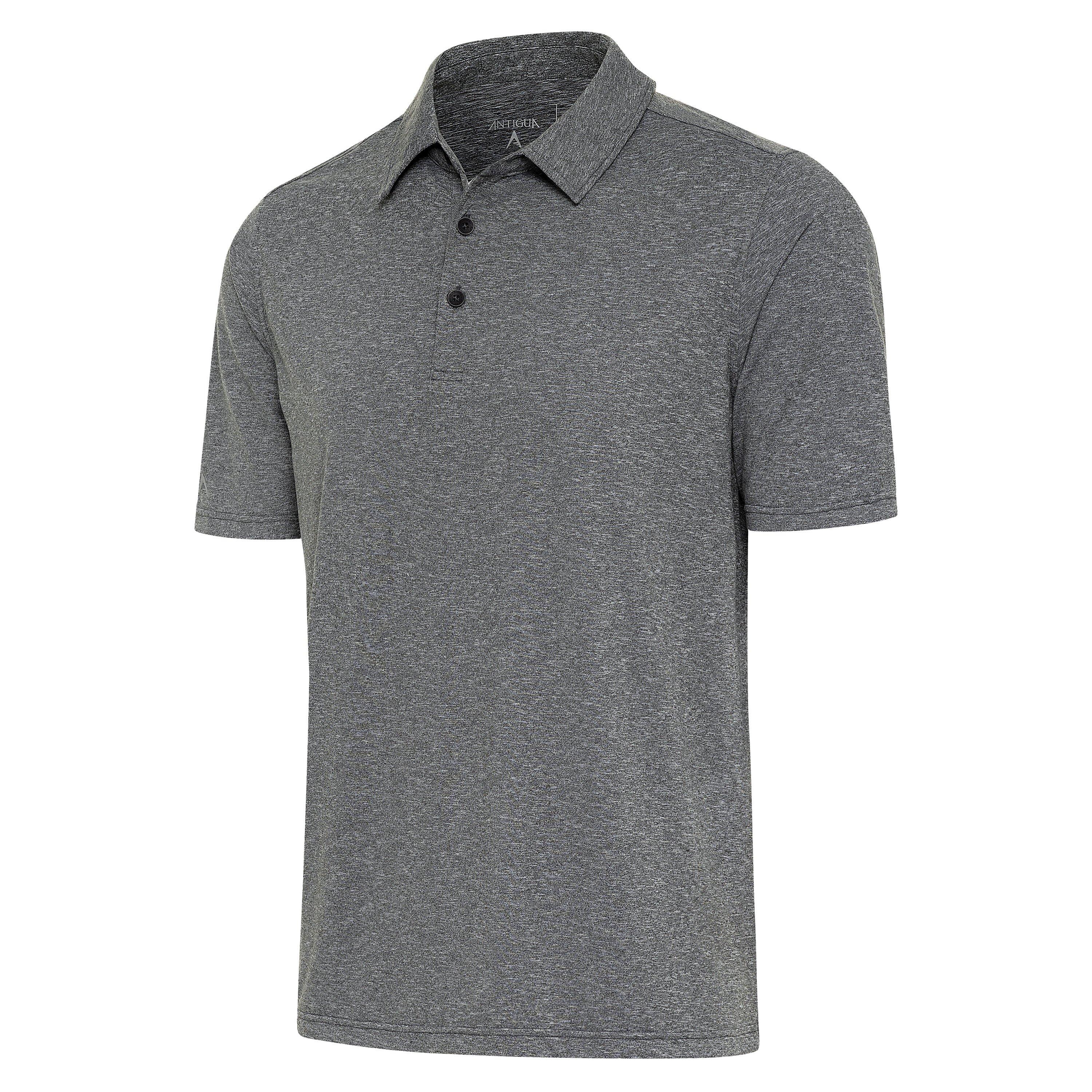 - This 88% Polyester/12% spandex brushed heather jersey fabric is silky soft and very comfy featuring breathable fabric with a self collar band, hem vents and a three button placket with matte buttons. A silicone Antigua logo is on left sleeve. Moisture wicking fabric with a tag free label ensures that you remain comfortable all day.