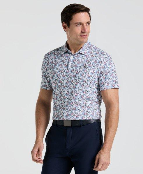 Give your golf style a major upgrade with this Original Penguin men's polo featuring an eye-catching retro-inspired bowtie micro print. The single knit fabrication feels lightweight, while added stretch delivers a comfortable fit with the perfect flex. For warm days, moisture-wicking properties keep you dry, even as your round heats up. With a sleek matching self-collar and 2-button placket this men's polo is an updated twist on a classic.