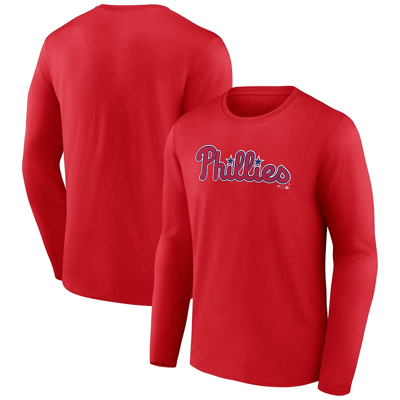 Men's Red Philadelphia Phillies Official Wordmark Long Sleeve T-Shirt