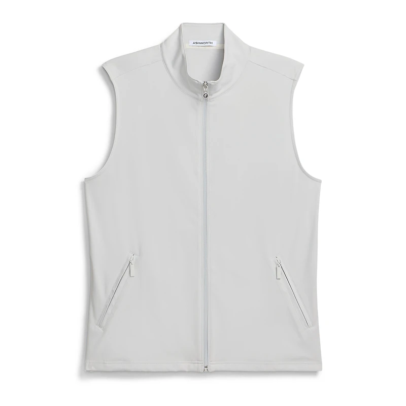 Your secret weapon. This high gauge vest offers four-way stretch tech fabric for maximum movement. This vest is great for layering against the elements, keeping you dry and comfortable all-day long with both wind and water resistance. Zippers on the pockets keep your belongings safely tucked away. The Golfman embroidered logo reminds you that Ashworth is the OG of golfwear.