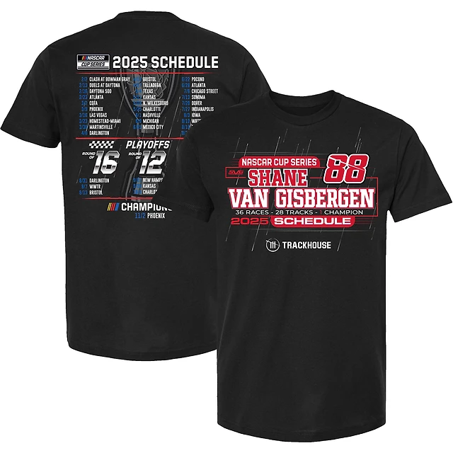 Men's Trackhouse Racing Team Collection Black Shane van Gisbergen 2025 NASCAR Cup Series Schedule T-Shirt