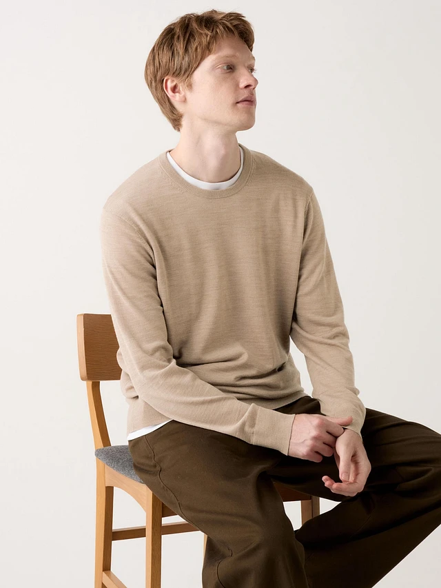 Long Sleeve Cotton Merino Blend Crew Neck Sweater