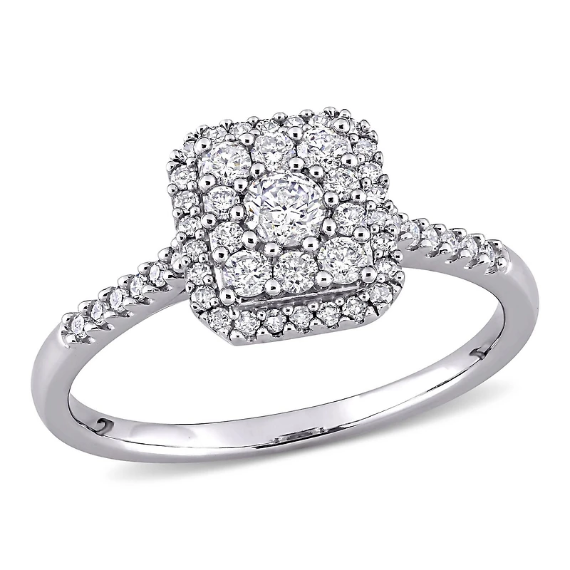 Miabella 1/2 Carat T.W. Diamond 10K White Gold Square Cluster Engagement Ring