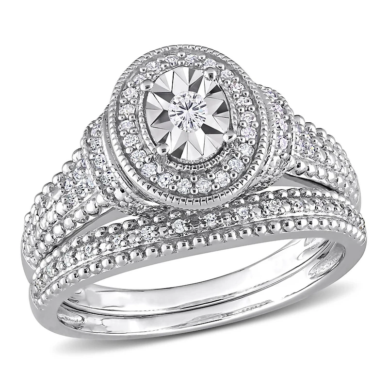 Miabella 1/4 Carat T.W. Diamond Sterling Silver Oval Halo Bridal Ring Set