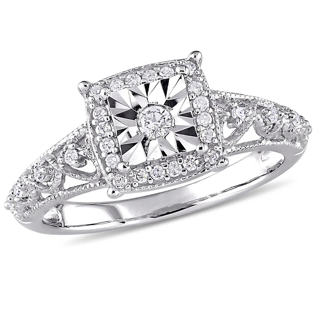 Miabella 1/5 Carat T.W. Diamond Sterling Silver Halo Vintage Engagement Ring