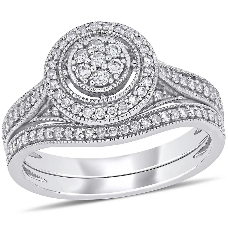 Miabella 2/5 Carat T.W. Diamond 10K White Gold Halo Bridal Set