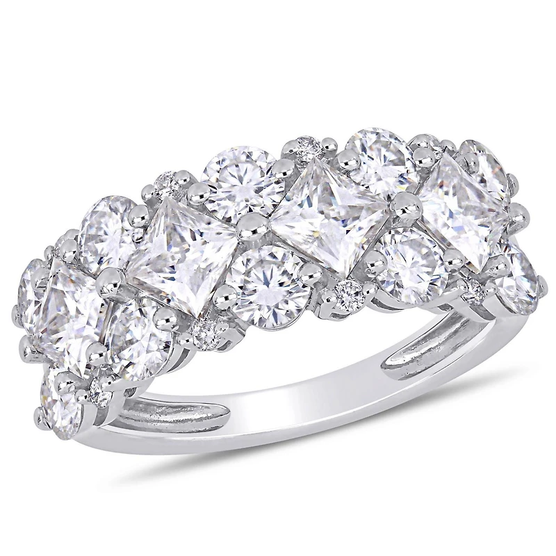 Miabella 3-5/8 Carat T.G.W. Moissanite and 1/10 Carat T.W. Diamond 10K White Gold Semi-Eternity Ring in Coquitlam, BC