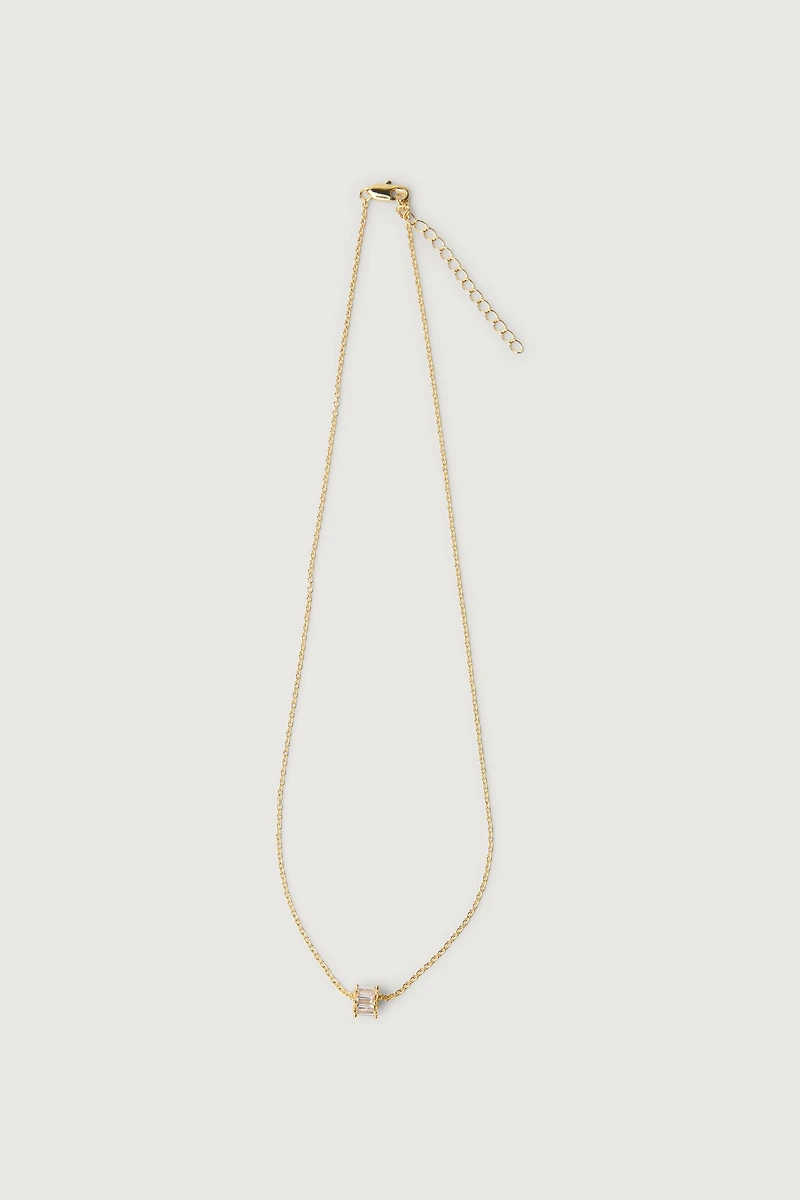16" length. 2" adjustable chain. Rolo chain. Squared zirconia gem. Lobster clasp. 14K gold or silver plating.