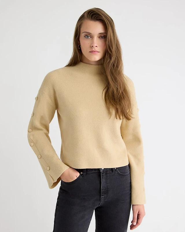 Mock-Neck Sweater with Buttons on Sleeves