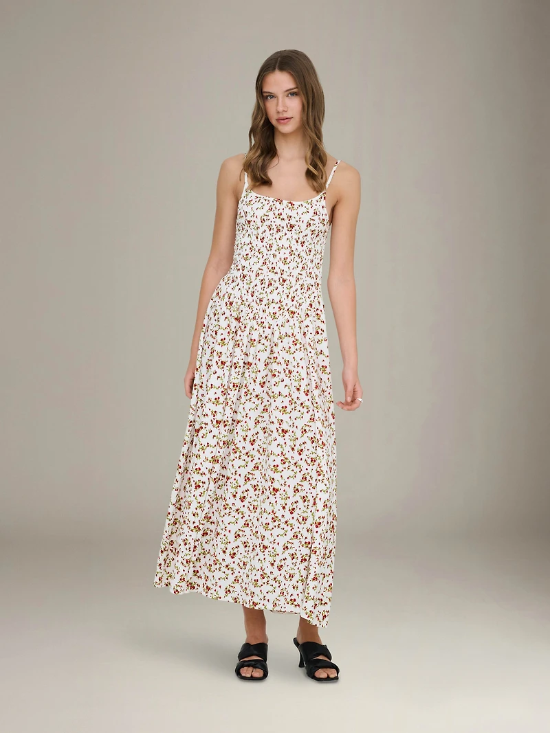 Designed for a close fit in the bodice with a ruched panel at the back, the Only Molly Printed Dress flows into a maxi-length skirt for breezy comfort. Unlined, adjustable shoulder straps offer a personalized fit.