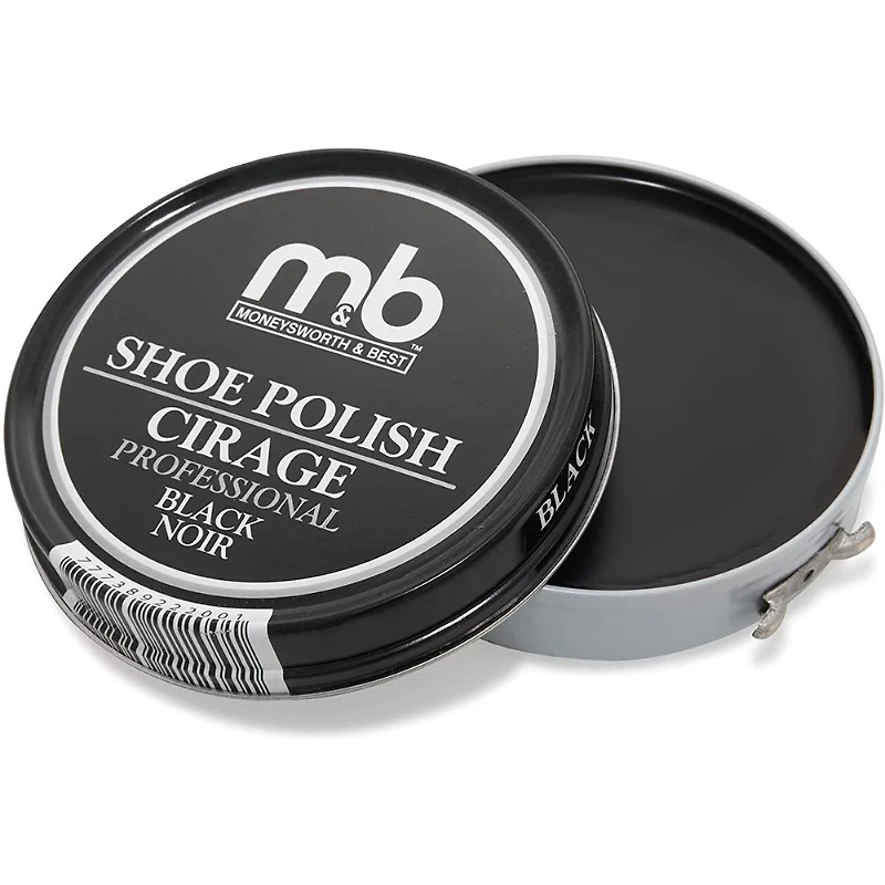 For a brilliant and durable shine on all leather shoes, try this traditional tin of shoe polish. It contains a special formula of pigments and natural waxes that not only enhance the colour of your shoes, but also protect them from water and stains. This polish nourishes the leather and gives it a smooth and glossy finish that lasts | Moneysworth And Best Professional Shoe Polish in Black Size 70g