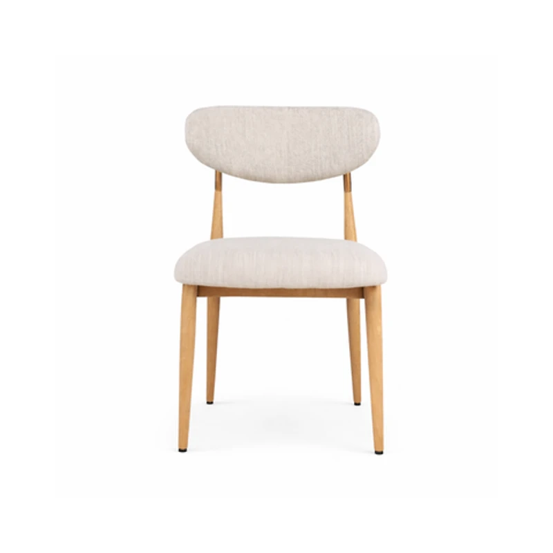 The Nelia side dining chair elevates your dining space with its modern silhouette and refined detailing. Upholstered in luxurious polyester fabric, it offers a smooth texture and plush seating for everyday comfort. The curved open backrest and sleek toothpick frame create a minimalistic yet elegant look. Iron legs with a wooden finish and gold accents add durability and a touch of sophistication. Ideal for contemporary interiors, this chair blends style, comfort, and structure seamlessly.