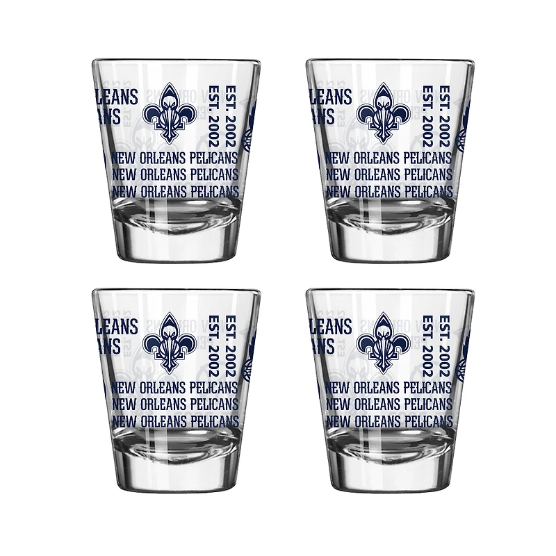 Toast to your favorite team with this New Orleans Pelicans 4-Pack 2oz. Shot Glass Set. These shot glasses boast vibrant, allover printed graphics that boldly declare your New Orleans Pelicans fandom. Each glass holds approximately 2oz., perfect for toasting every touchdown and victory!