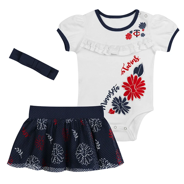 Newborn White/Navy Minnesota Twins Sweet Catcher 3-Piece Bodysuit, Headband and Skirt Set