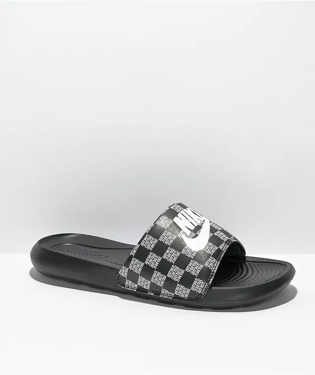 Nike Victori One Printed Black & White Checkerboard Slide Sandals