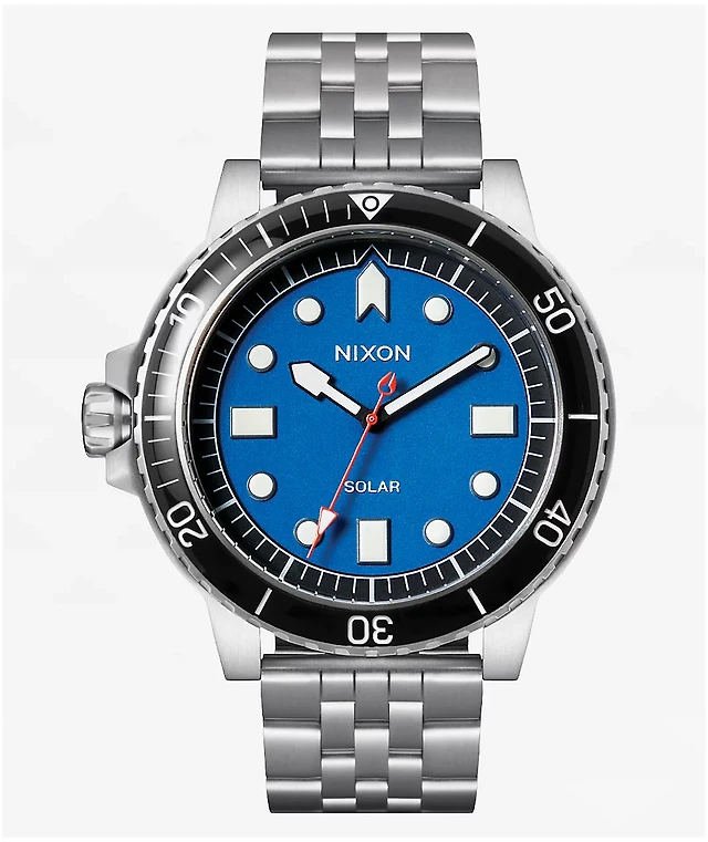 Nixon Stinger 44 Silver & Blue Solar Analog Watch
