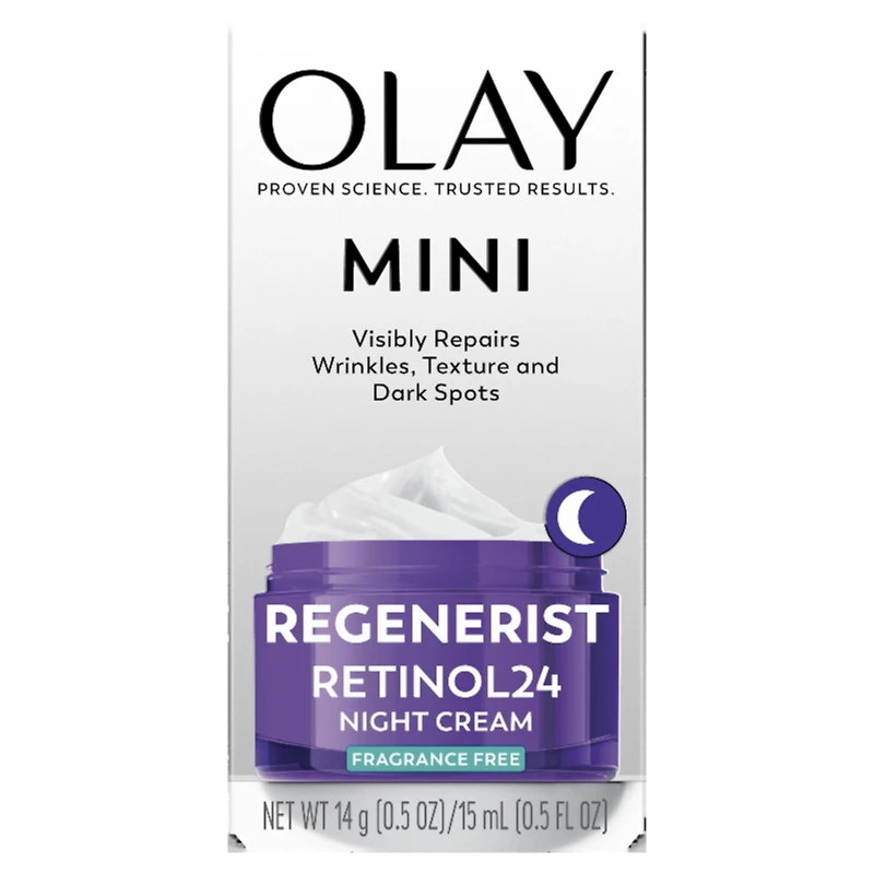 Olay Regenerist Retinol 24 Facial Moisturizer penetrates deep into skin surface layers. Our proprietary blend of Vitamin B3 + Retinol complex hydrates skin for 24 hours for a bounty of benefits. Youll see visible improvements in fine lines & wrinkles, smoothness, brightness, firming, dark spots, and pores. Retinol 24 delivers all of these benefits with virtually no irritation. This fragrance and dye free moisturizer absorbs quickly and goes deep into your skin surface layers so you wake up every morning to younger-looking, radiant skin. Use Olay daily for 28 days and see true skin transformation | Olay Regenerist Olay Retinol 24 Night Hydrating Moisturizer - Fragrance Free Size 15ml