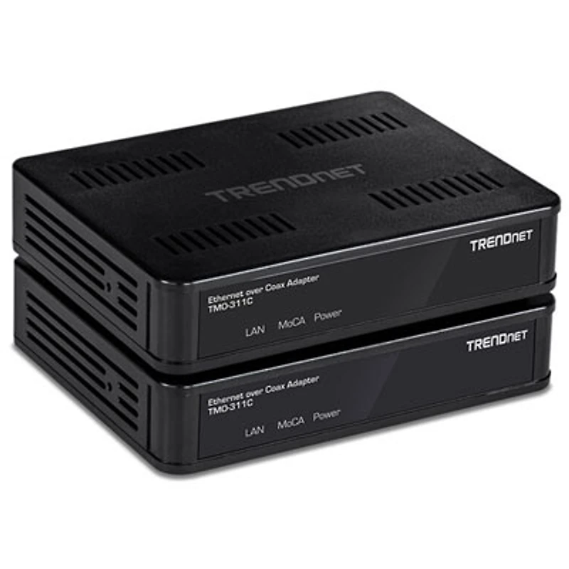 This is a Geek Squad Certified Open Box Product. See below for more information. TRENDnet's MoCA 2.0 Ethernet Over Coax Adapters, model TMO-311C2K, uses your existing coaxial cables to extend a high-speed building-wide Triple Play network throughout your home or office. These compact MoCA adapters are designed to support MoCA 2.0 deployment for digital TV, High-speed internet, and VoIP single-access subscription service offerings. | Open Box - TRENDnet MoCA 2.0 Ethernet-over-Coax Adapter Kit - 2-Pack