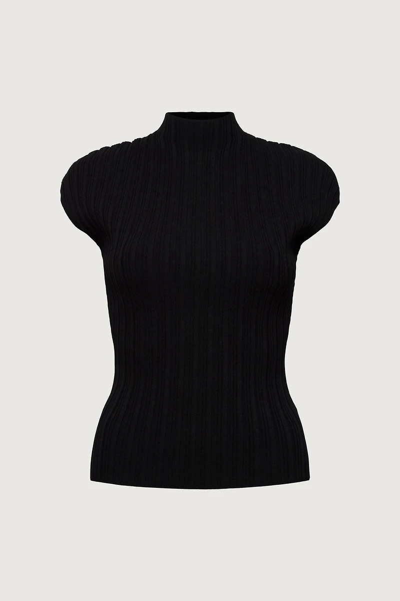 Ottoman rib. Mock neckline. Cap sleeves.