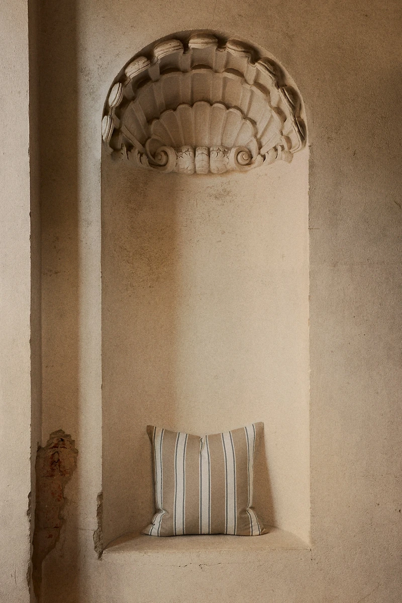 Cushion cover in water-repellent cotton canvas, suitable for outdoor use. Concealed zipper at one side.
