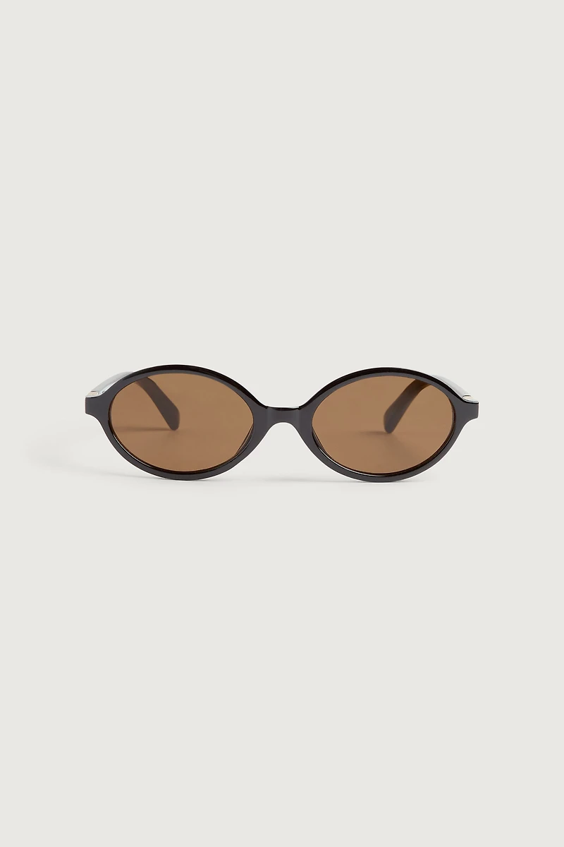 These sunglasses feature thin oval frames, and can be easily styled with any outfit. Comes with a protective case.